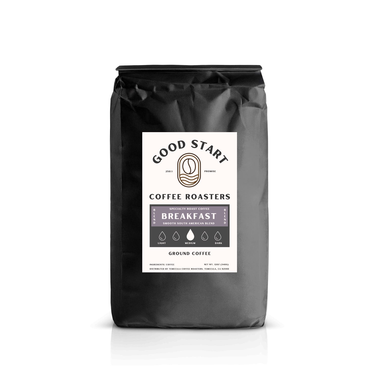 Roast: Medium House Breakfast Blend. Smooth blend of coffee from South America